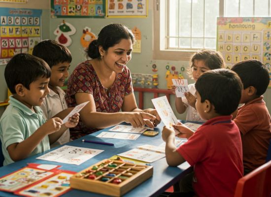 Senior KG: A preparatory stage for formal schooling. Children strengthen reading, writing, arithmetic, and reasoning skills through engaging thematic lessons. Focus is placed on discipline, communication, and teamwork to ensure school readiness and confidence.