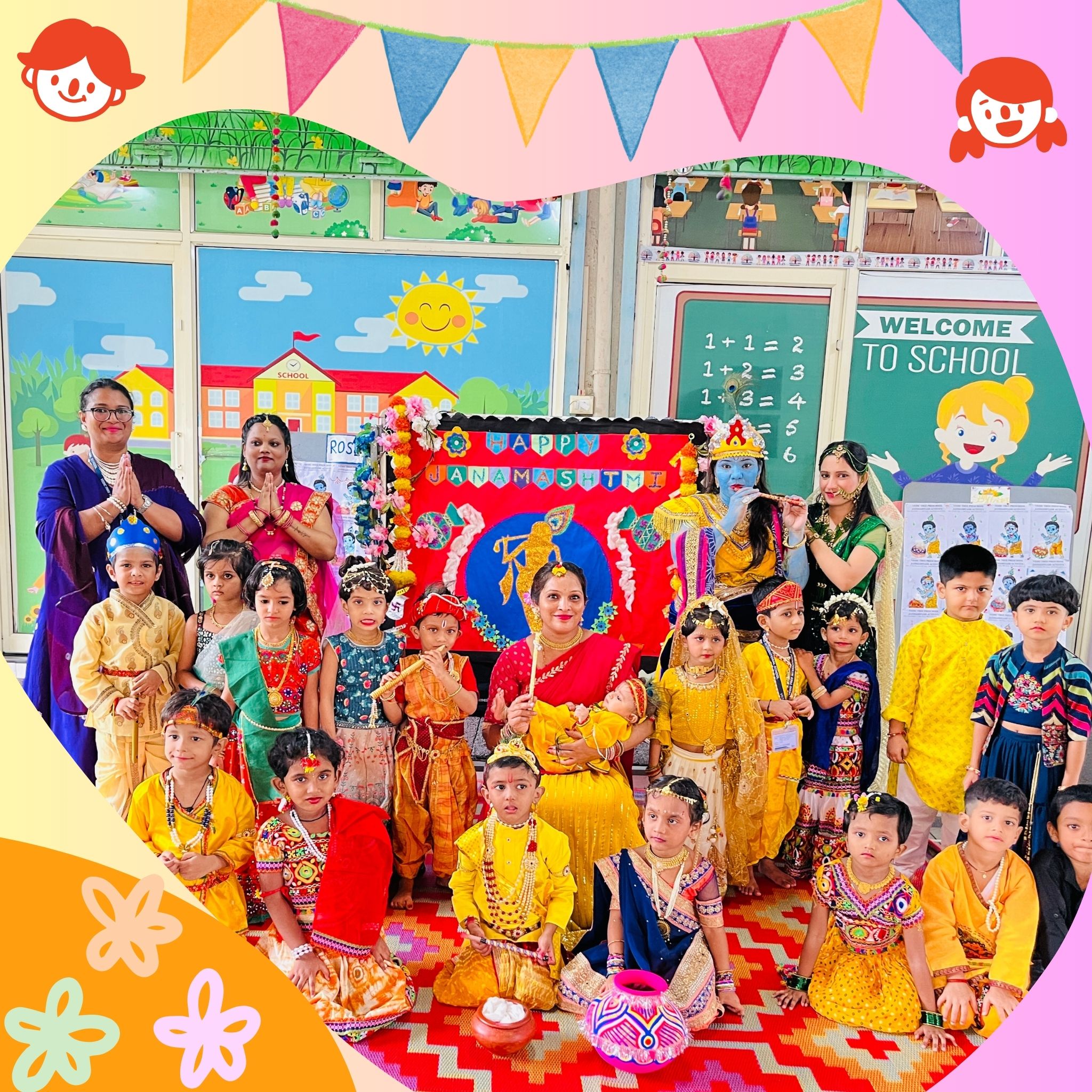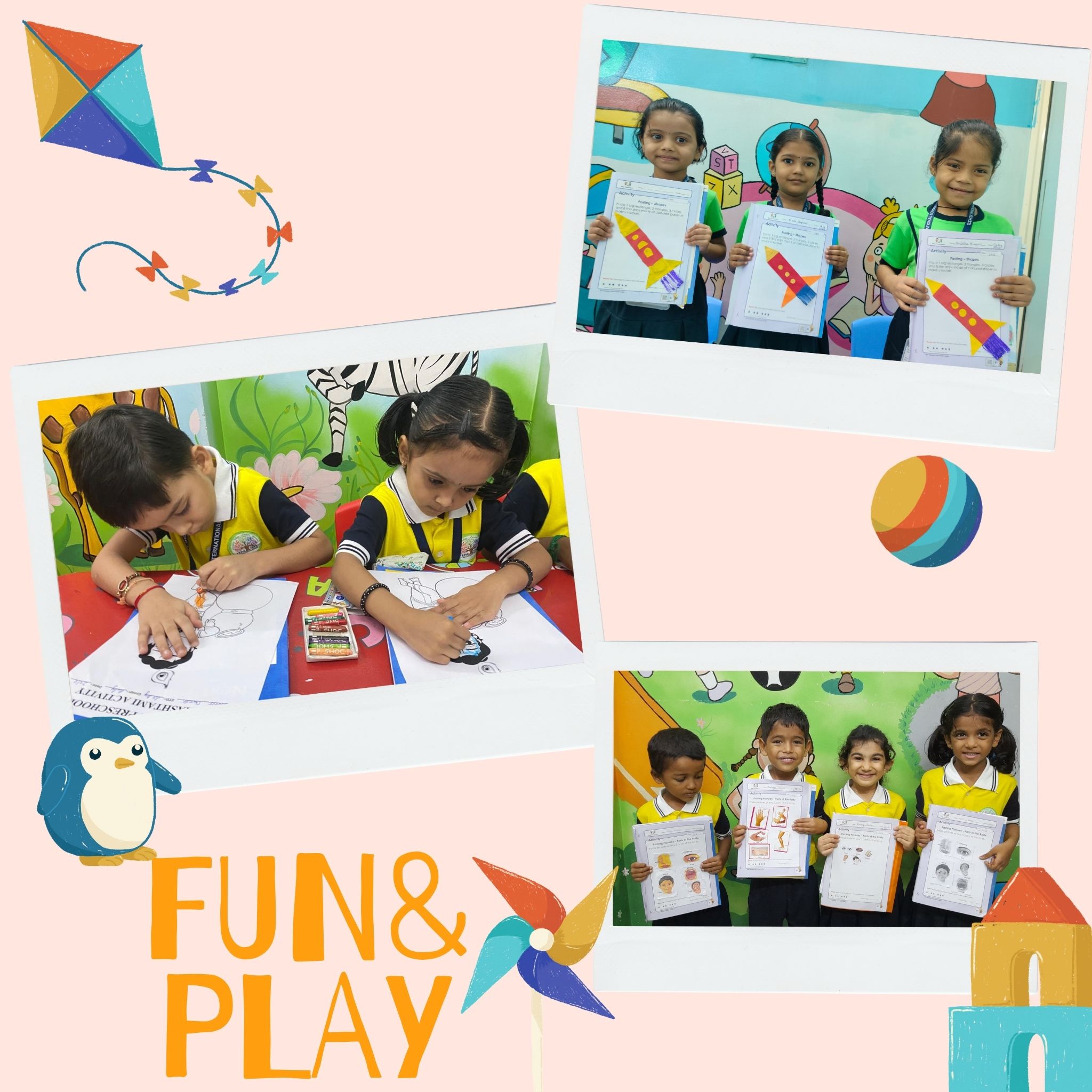 Junior KG: Junior KG builds essential pre-academic skills through fun and structured learning. Children develop early literacy, numeracy, and general knowledge through phonics, pattern recognition, storytelling, and themed activities. Social skills, self-expression, and classroom.